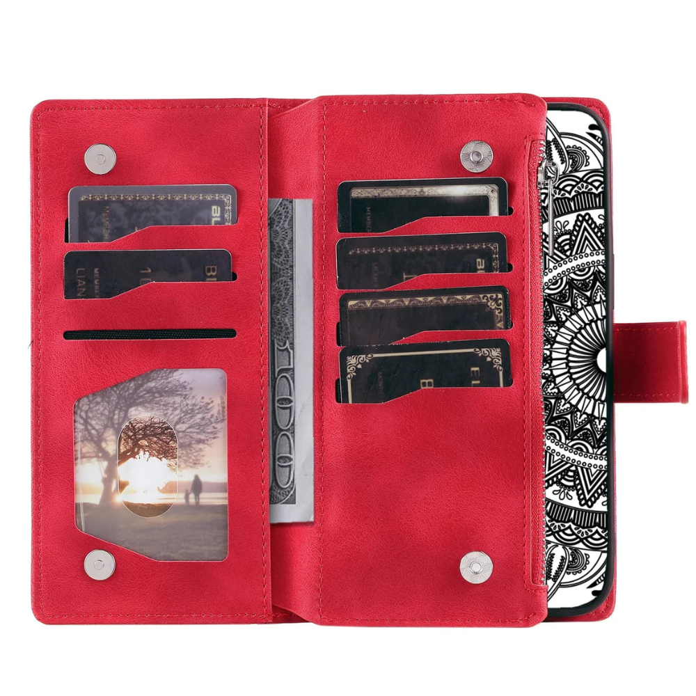 “As a busy mom always juggling kids and groceries, this wallet case has been a total lifesaver!! The textured leather gives amazing grip (no more dropping my phone while chasing toddlers lol), and the card slots plus zipper pocket mean i can finally ditch my huge wallet. The reinforced corners have saved my phone SO many times, and the tan leather actually hides little fingerprints and mystery stains which is clutch. Perfect mix of protection and convenience!"