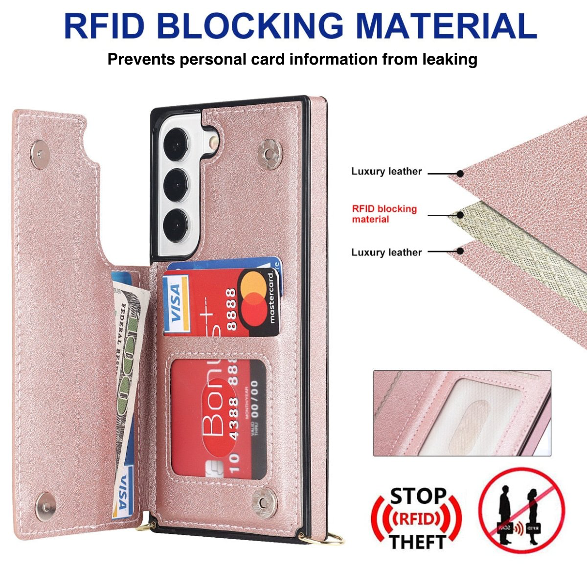 • Comes with an RFID-blocking material