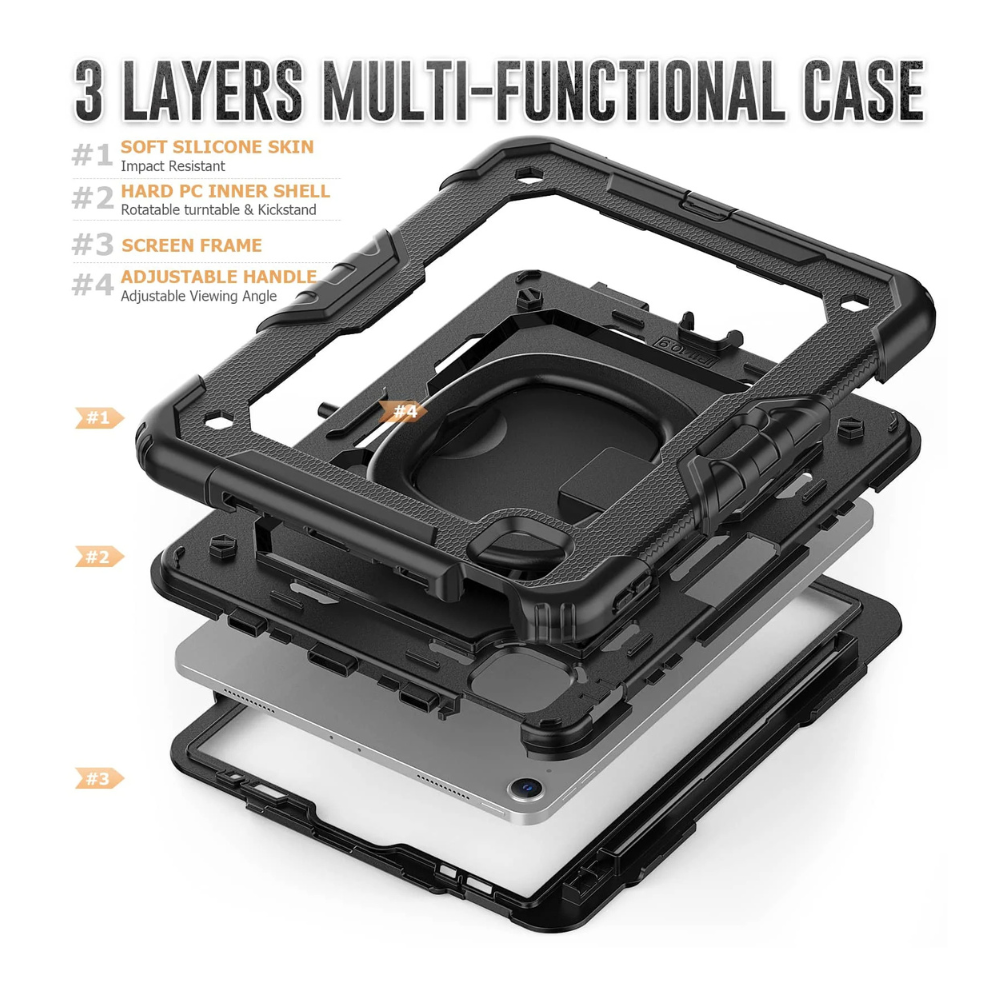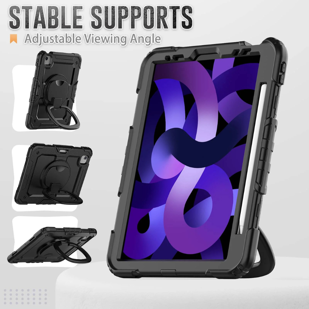 Safeguard your iPad Air with the Nescio Heavy Duty Case, engineered for ultimate protection and versatility. This military-grade shockproof cover is designed to withstand accidental drops and everyday wear, ensuring your device stays in pristine condition.