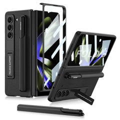 The Novi Leather Grain Case for Samsung Galaxy Z Fold 5 is tailored to complement the premium features of your device. Crafted with meticulous attention to detail, this leather grain case is a complete solution that integrates a pen holder, sliding bracket, built-in kickstand, and shell film for advanced protection.